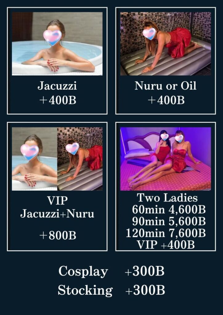 - VIP Nuru Experience: For a more exclusive and luxurious experience, the VIP package starts at 4,500 THB, including a private room with special amenities.